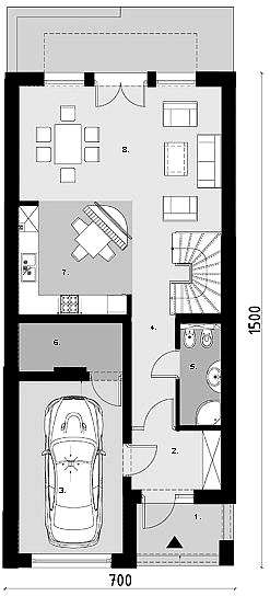 • Гараж в данном доме подойдет не только для машины, в нем можно разместить верстак и стеллажи для Пин Ап